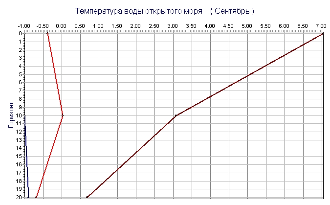 Восточно-Сибирское море - Гидрология моря - Температура воды - Профили (по 1-гр. квадратам)