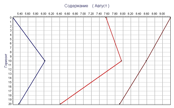 Карское море - Гидрохимия моря - Содержание кислорода в мл/л - Профили (по 1-гр. квадратам)