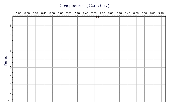 Карское море - Гидрохимия моря - Содержание кислорода в мл/л - Профили (по 1-гр. квадратам)