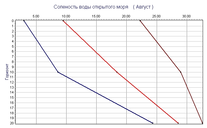 Море Лаптевых - Гидрология моря - Соленость воды - Профили (по 1-гр. квадратам)