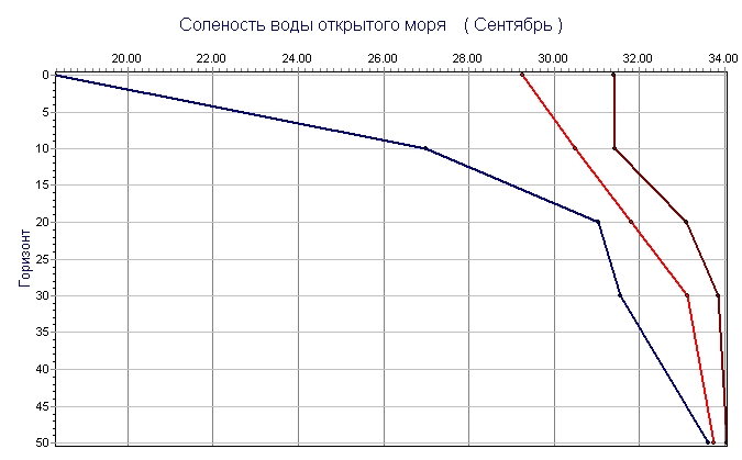 Море Лаптевых - Гидрология моря - Соленость воды - Профили (по 1-гр. квадратам)
